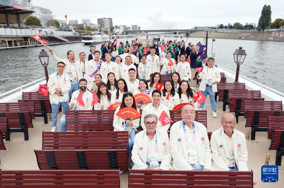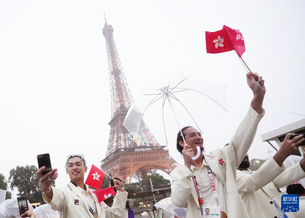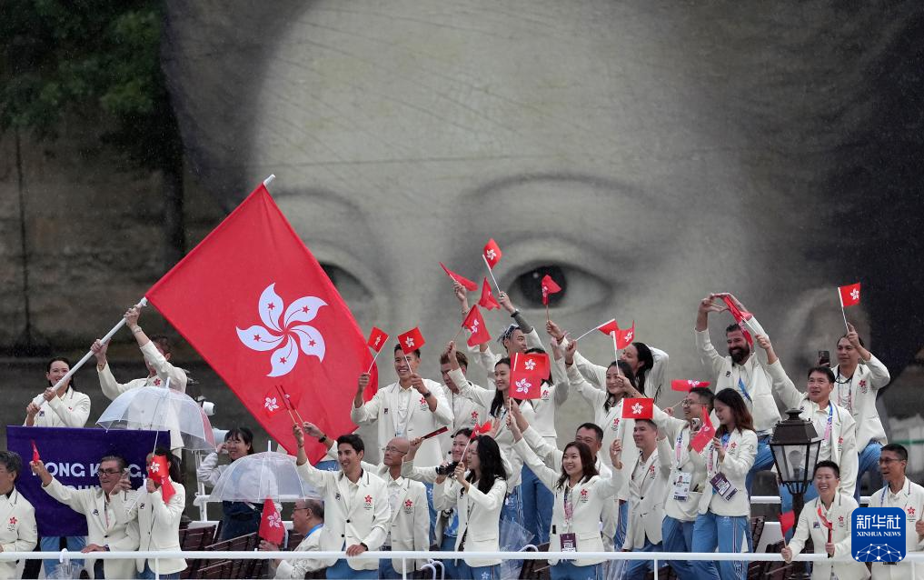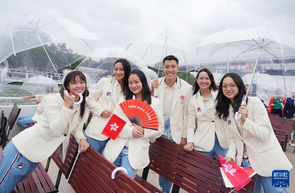 7月26日,中國(guó)香港體育代表團(tuán)在開(kāi)幕式上。新華社記者 呂小煒 攝