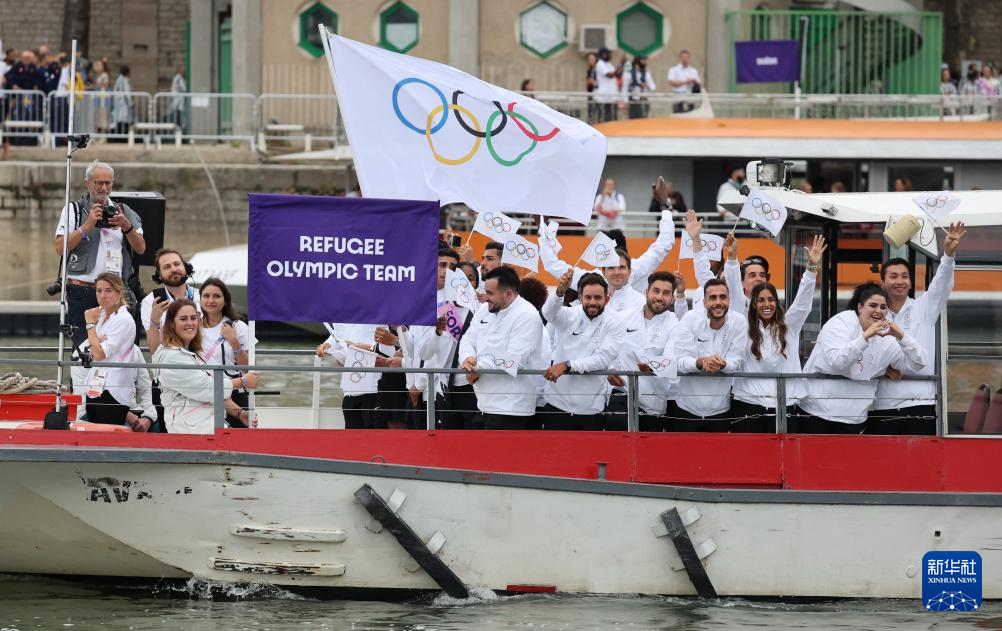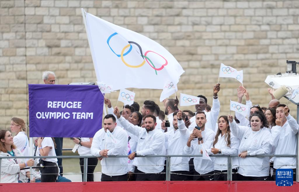 7月26日,難民體育代表團(tuán)在開(kāi)幕式上。新華社記者 費(fèi)茂華 攝pagebreak