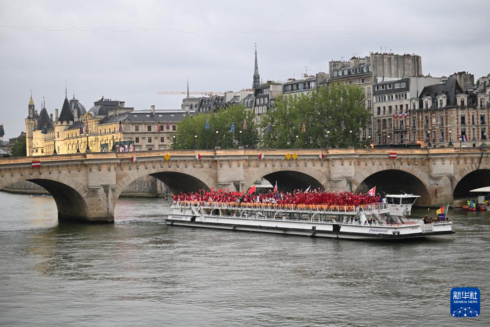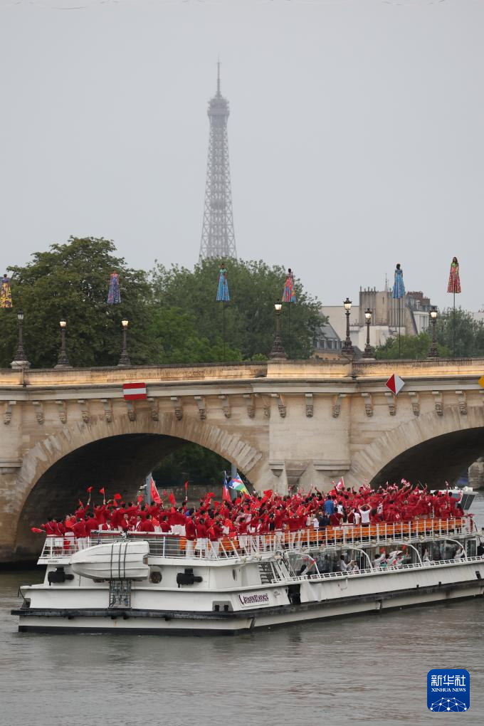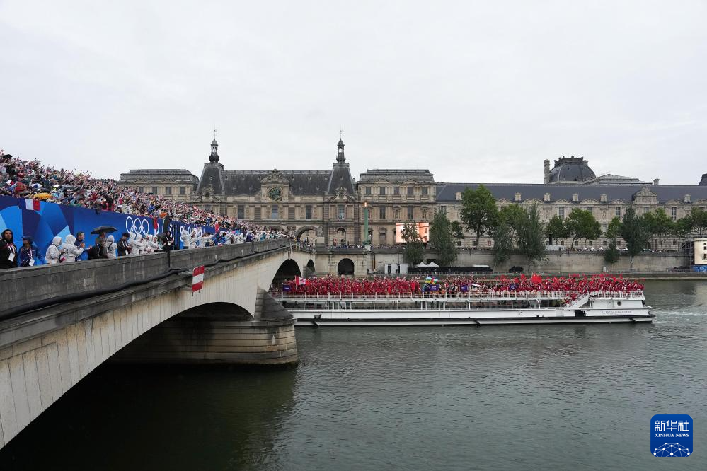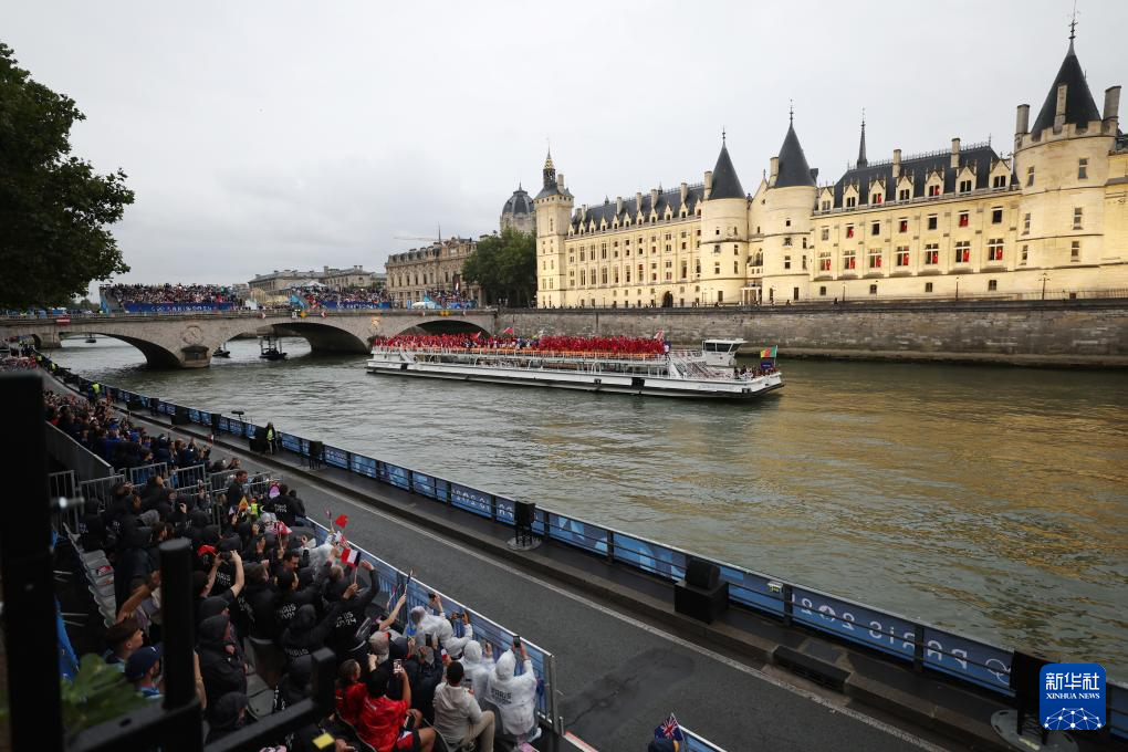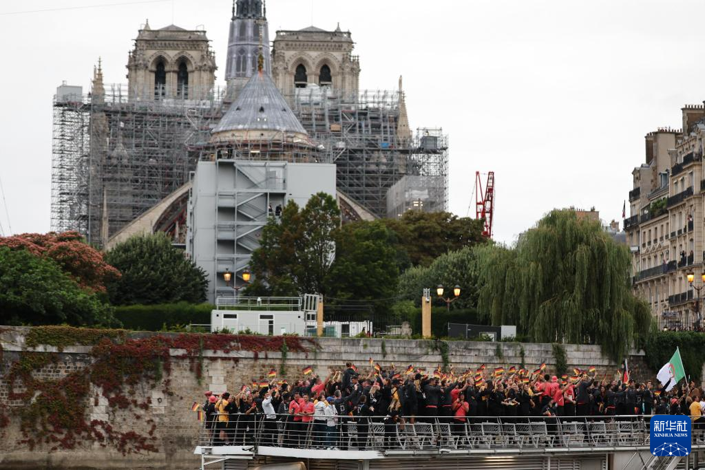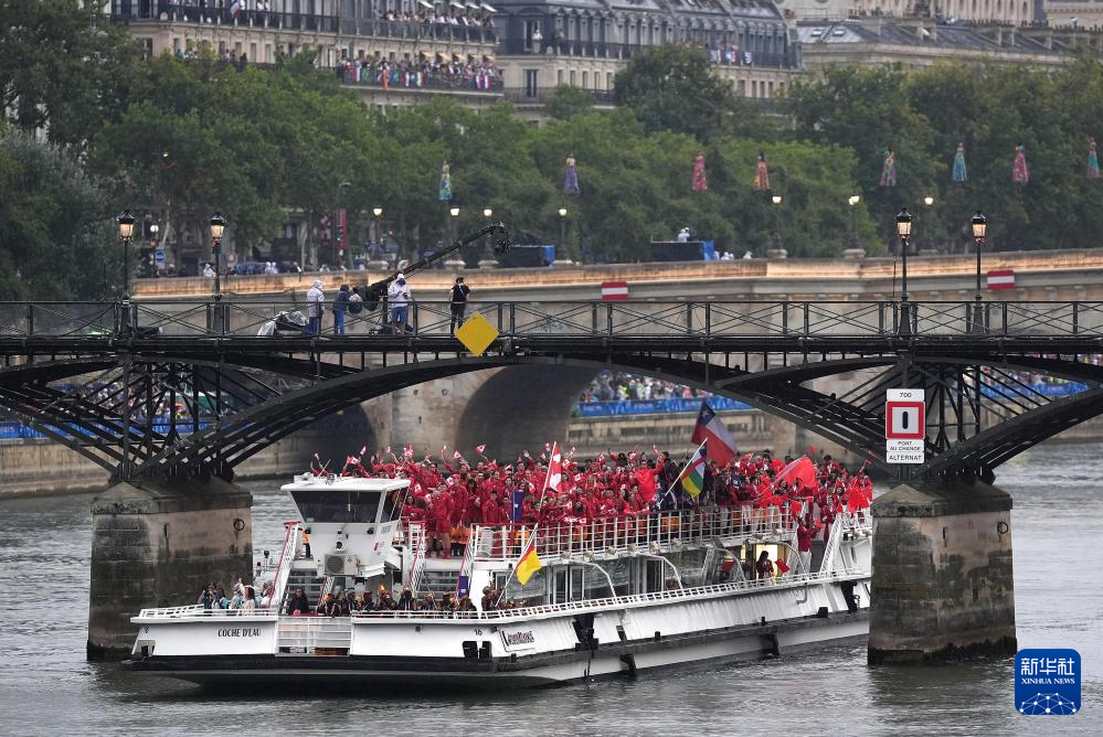 7月26日,各代表團(tuán)成員在開(kāi)幕式上抵達(dá)耶拿橋。新華社發(fā)(POOL照片/盧多維克·馬林)
