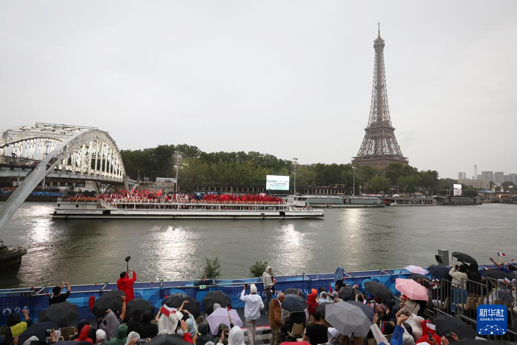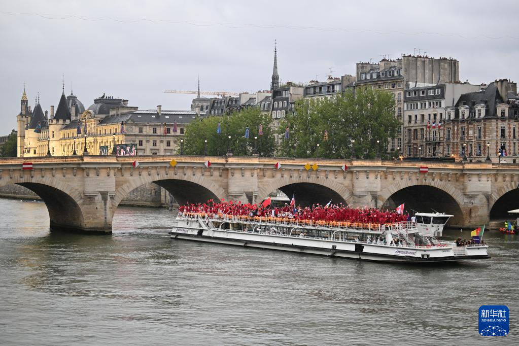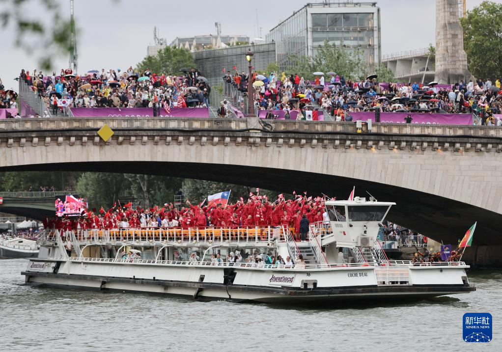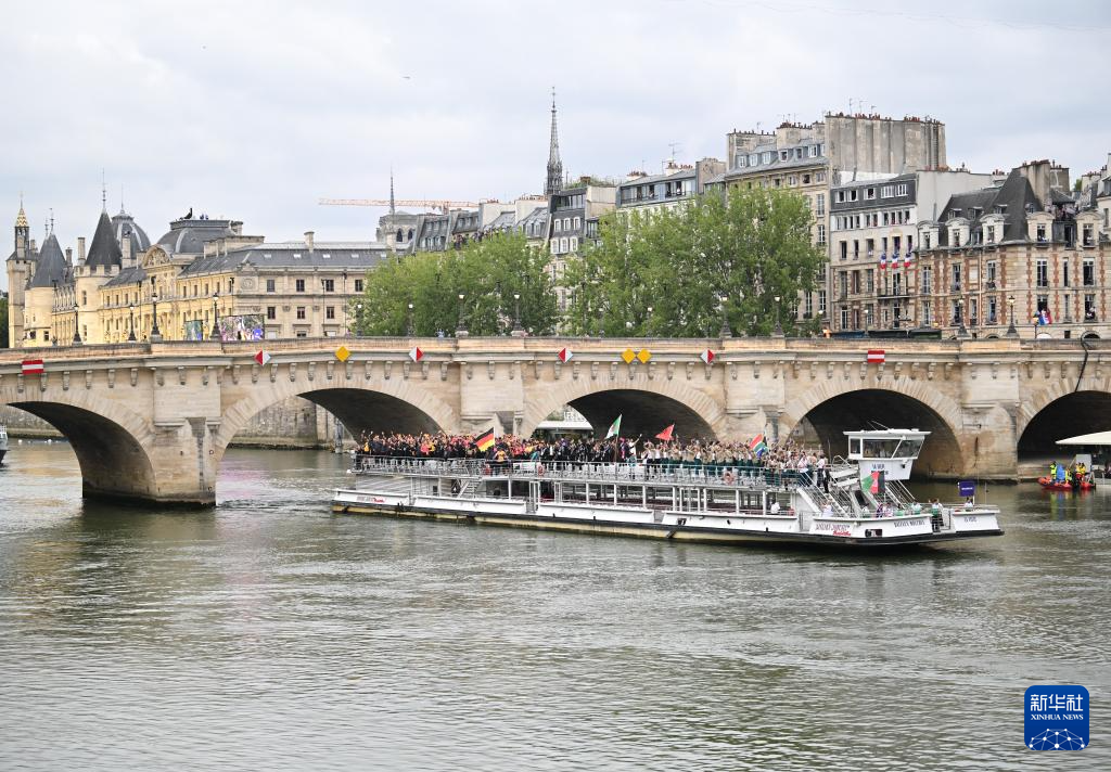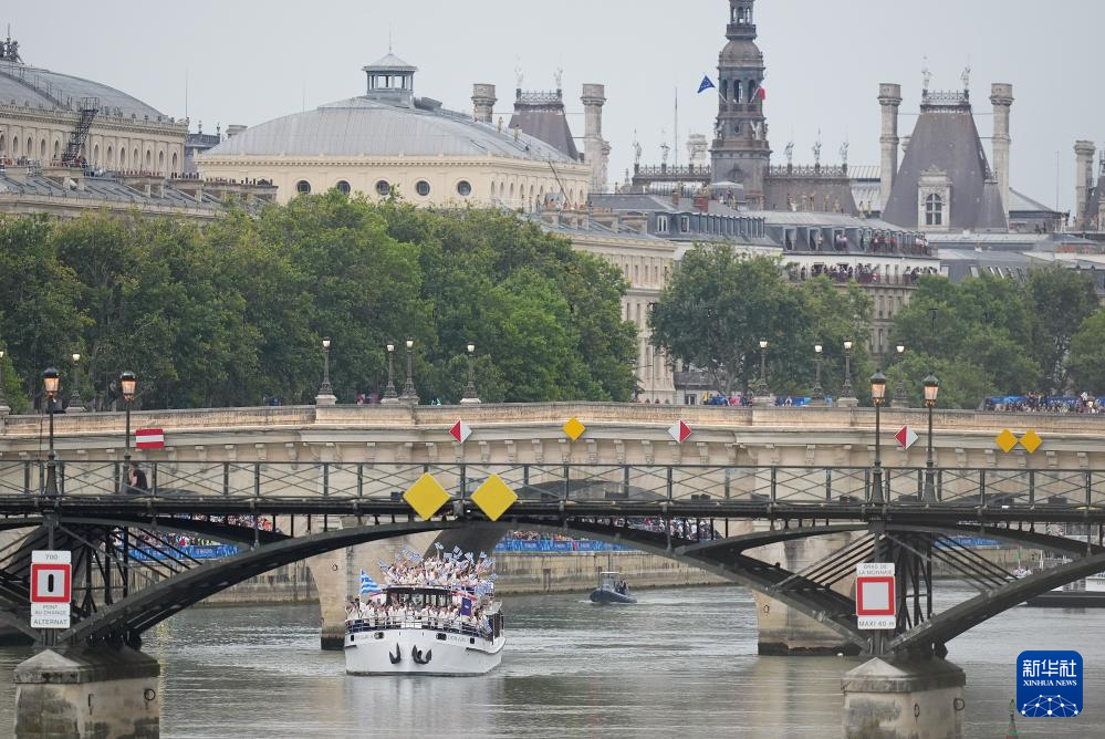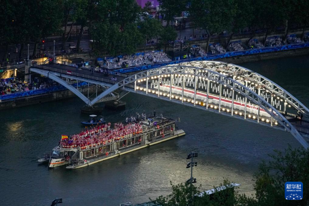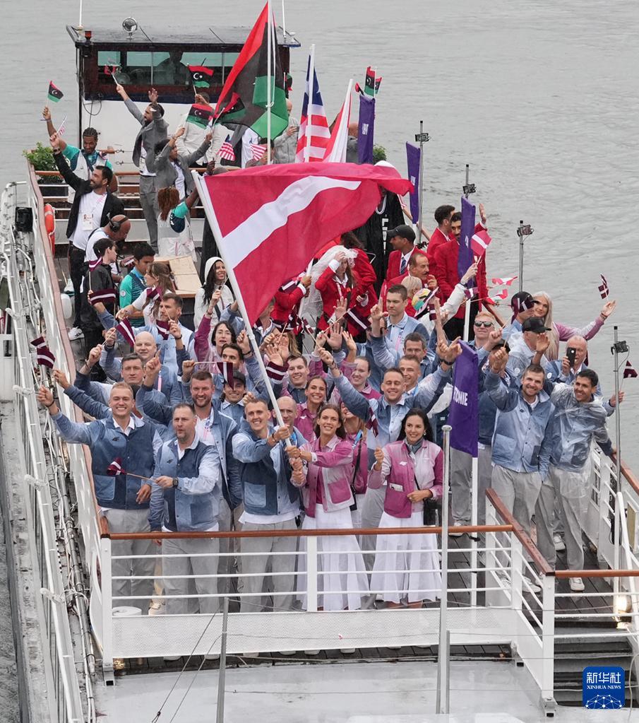 7月26日,各代表團(tuán)成員在開(kāi)幕式上抵達(dá)耶拿橋。新華社發(fā)(POOL照片/盧多維克·馬林)