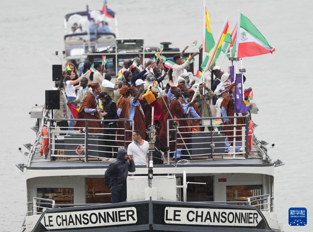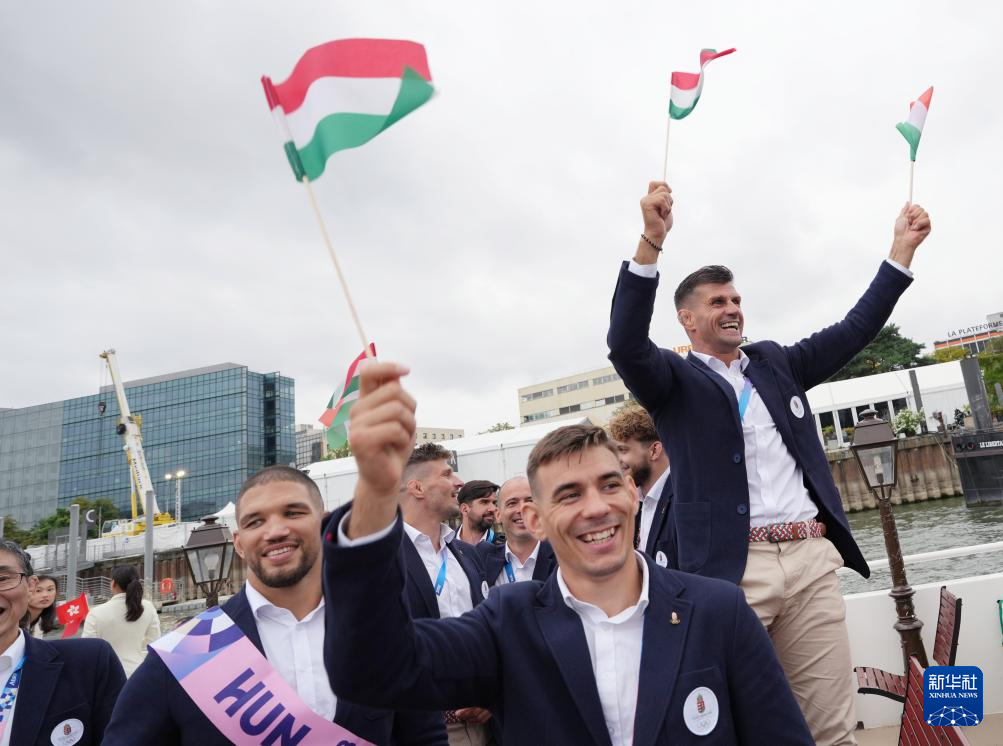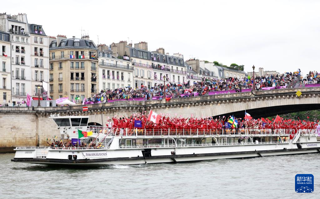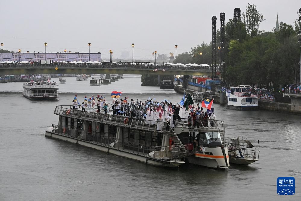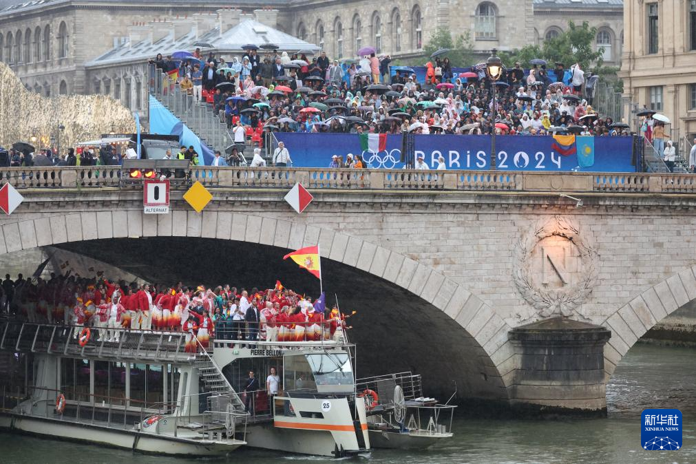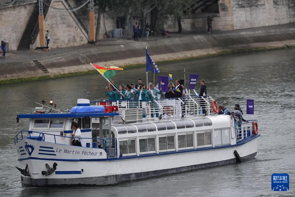 7月26日,各代表團(tuán)成員在開(kāi)幕式上抵達(dá)耶拿橋。新華社發(fā)(POOL照片/盧多維克·馬林)