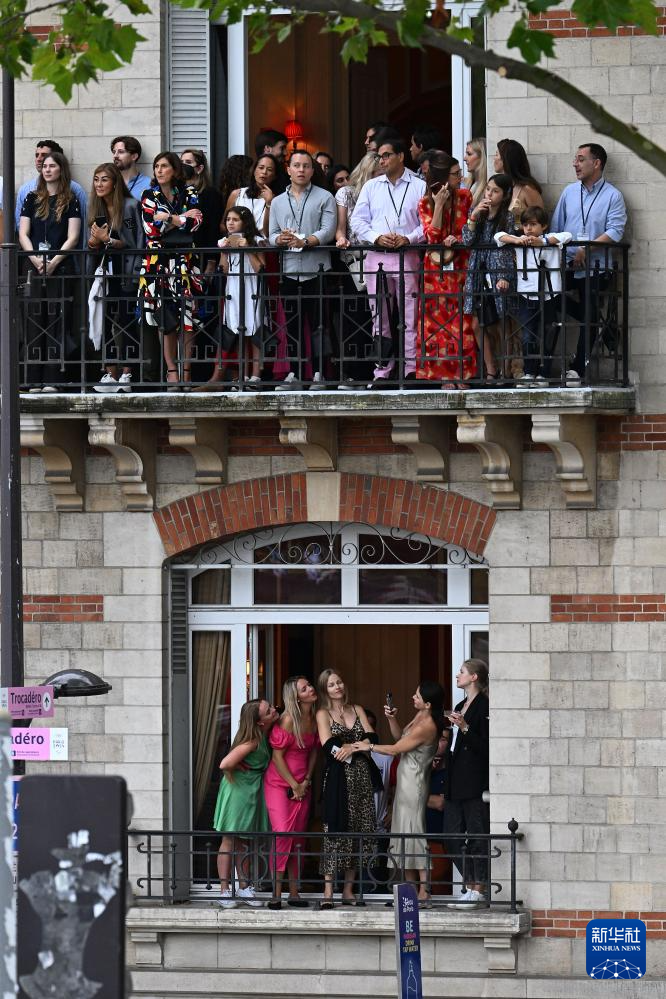 7月26日,中國(guó)體育代表團(tuán)成員(前)抵達(dá)特羅卡德羅廣場(chǎng)開(kāi)幕式慶祝儀式現(xiàn)場(chǎng)。新華社記者 高靜 攝