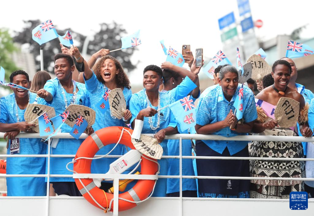 7月26日,斐濟(jì)體育代表團(tuán)成員在開(kāi)幕式上。新華社記者 呂小煒 攝
