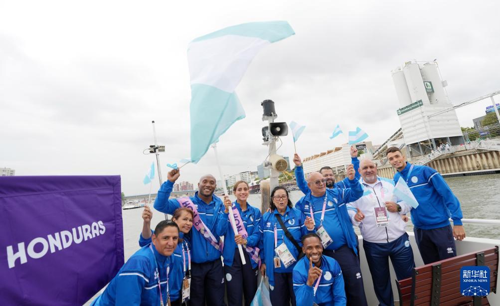 7月26日,洪都拉斯體育代表團(tuán)在開(kāi)幕式上。新華社記者 呂小煒 攝