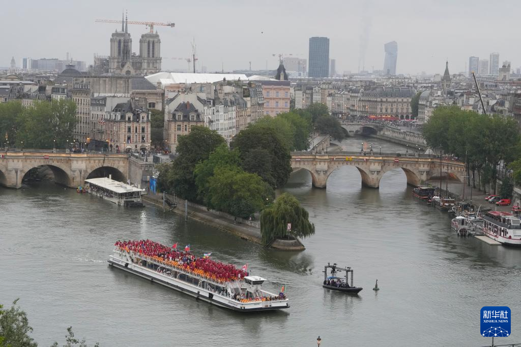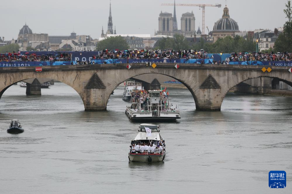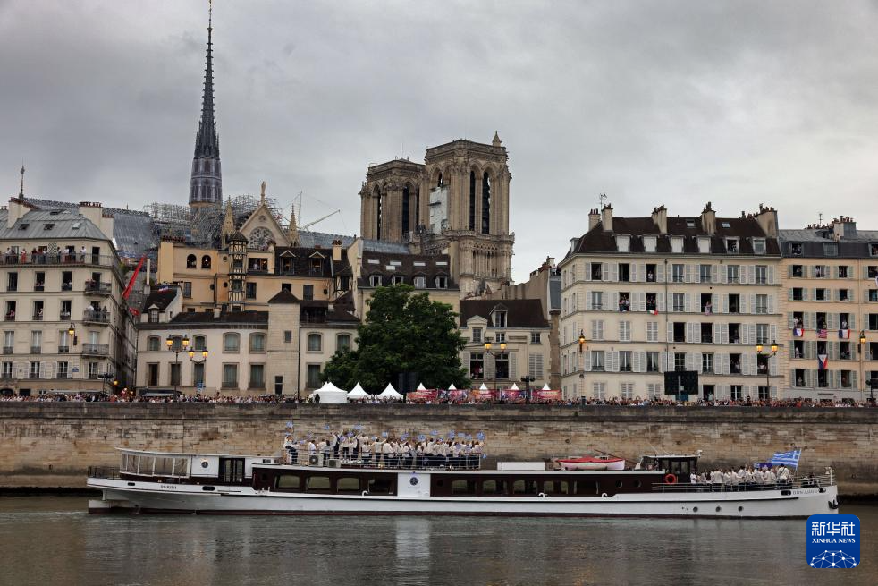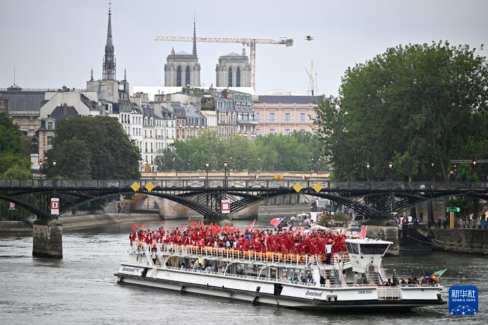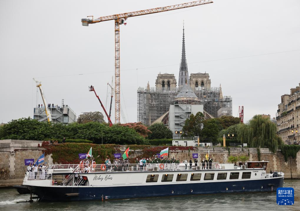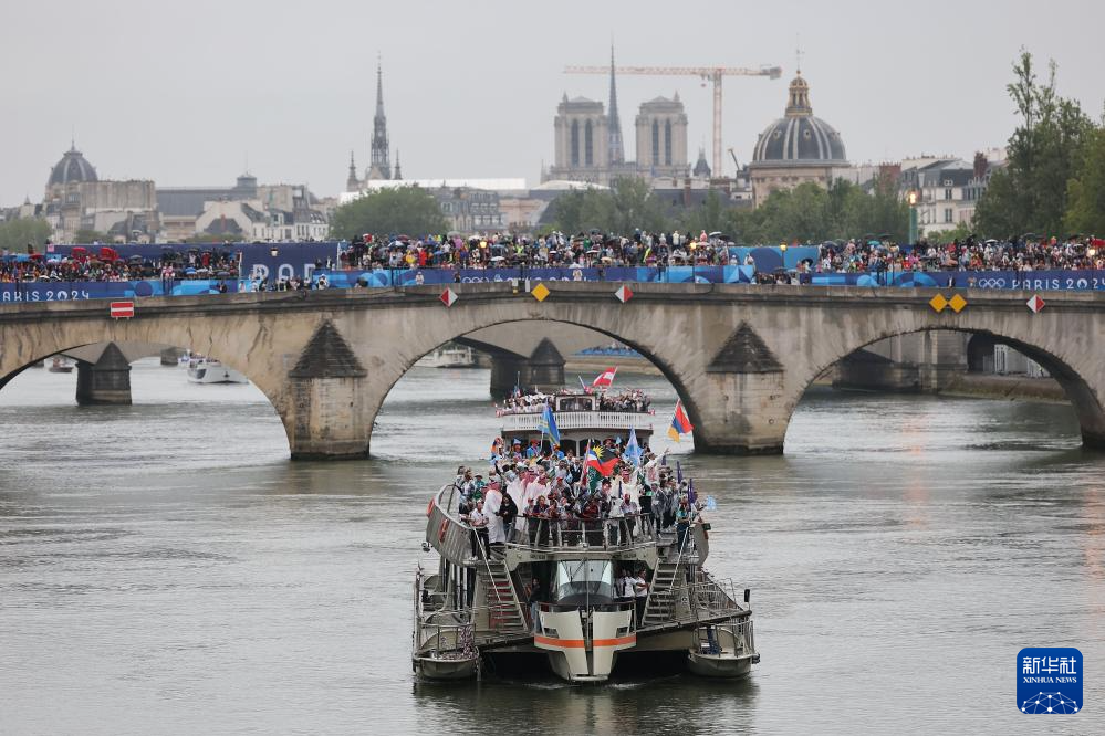 7月26日,各體育代表團(tuán)在開(kāi)幕式上,右側(cè)是巴黎圣母院。新華社發(fā)(POOL照片/丹·馬蘭)pagebreak