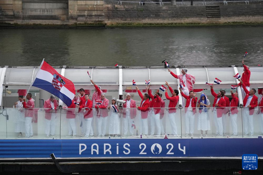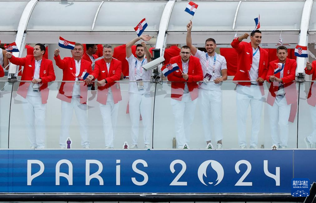 7月26日,克羅地亞體育代表團(tuán)成員在開(kāi)幕式上。新華社發(fā)(POOL照片/克洛達(dá)赫·基爾科因)pagebreak