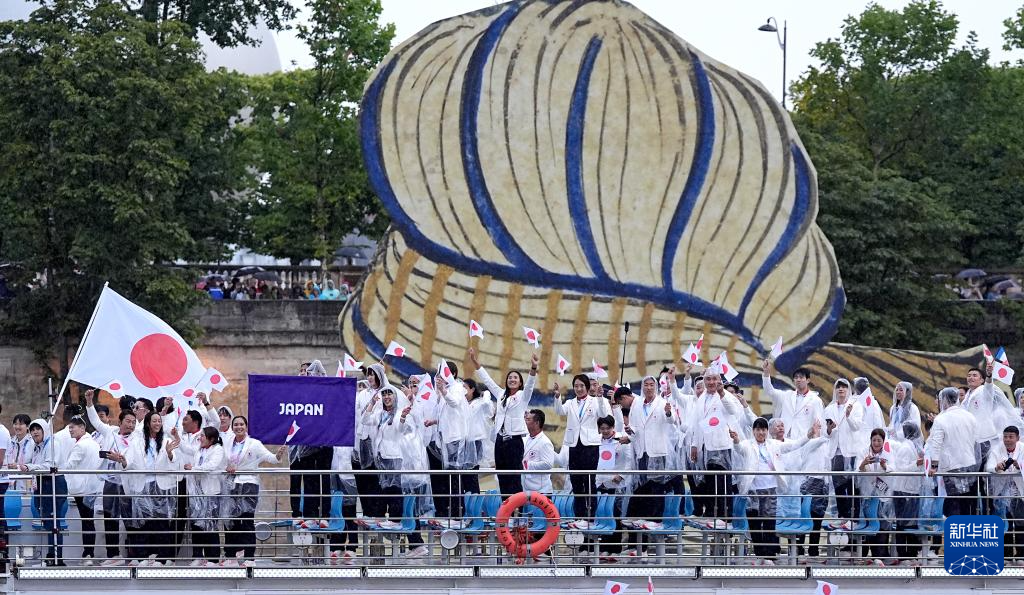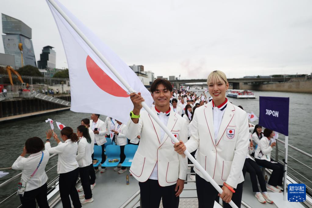 7月26日,日本體育代表團(tuán)在開(kāi)幕式上。新華社記者 江文耀 攝