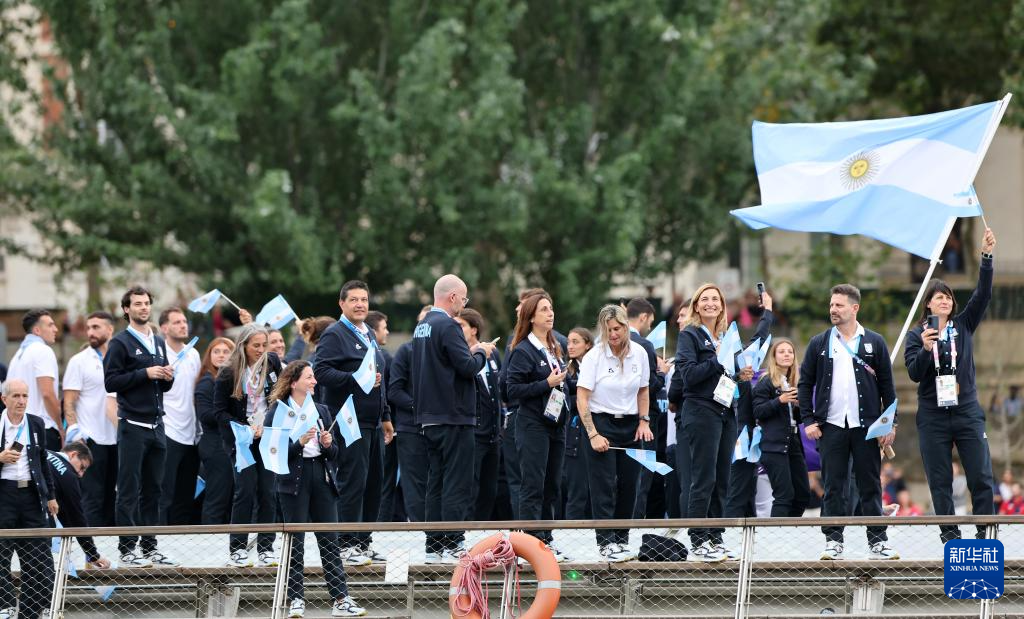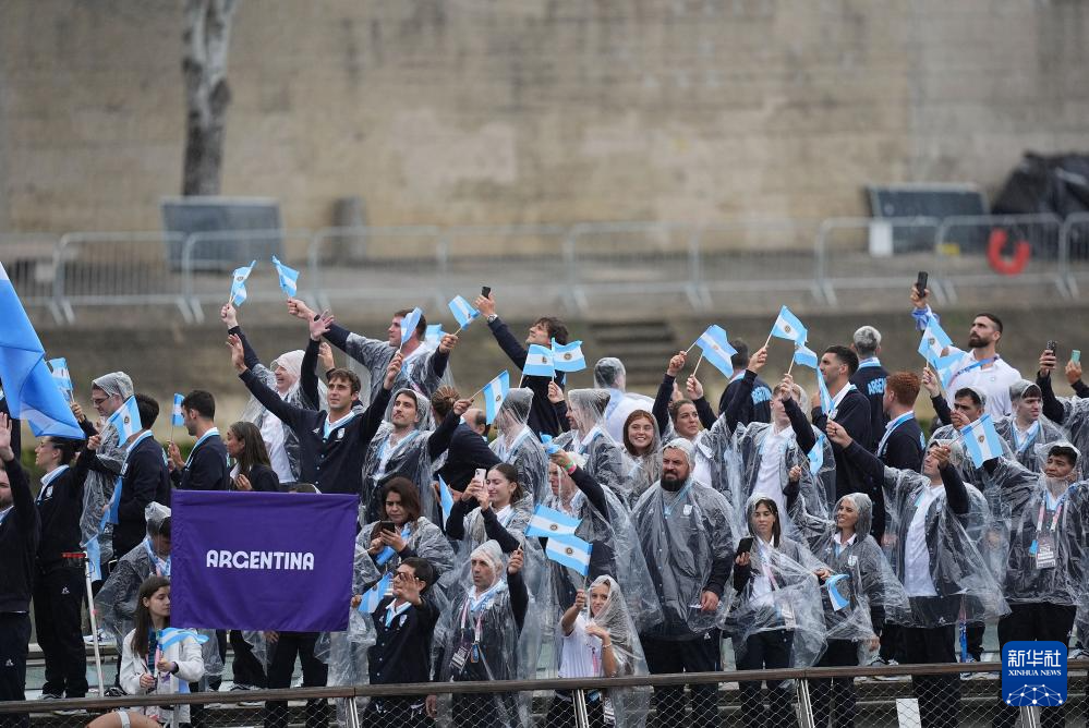 7月26日,阿根廷體育代表團(tuán)成員在開(kāi)幕式上。新華社記者 王東震 攝