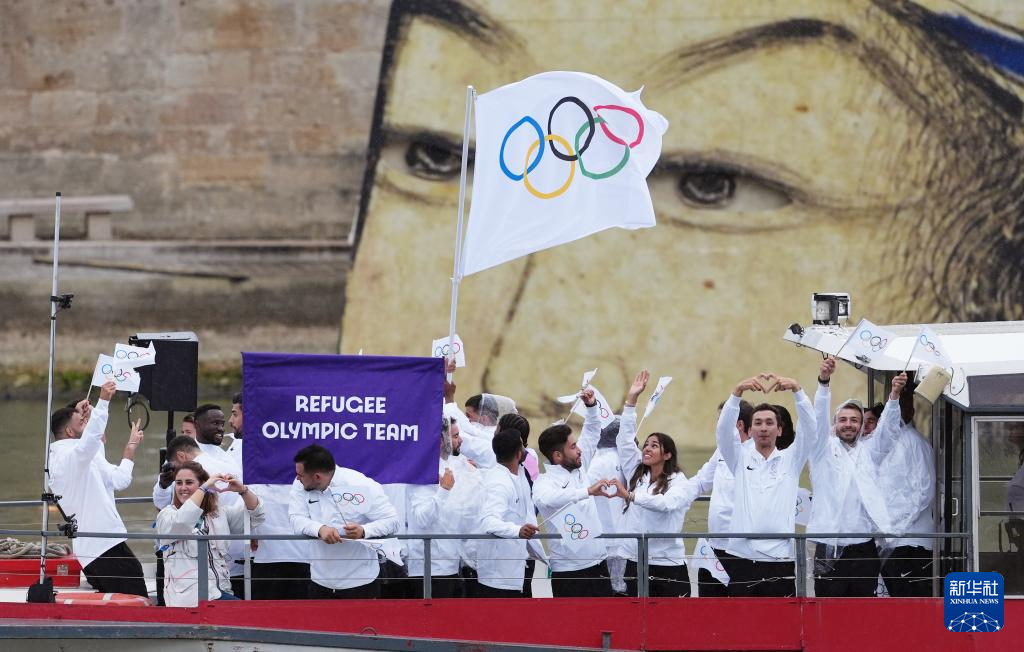 7月26日,難民體育代表團(tuán)在開(kāi)幕式上。新華社記者 任正來(lái) 攝