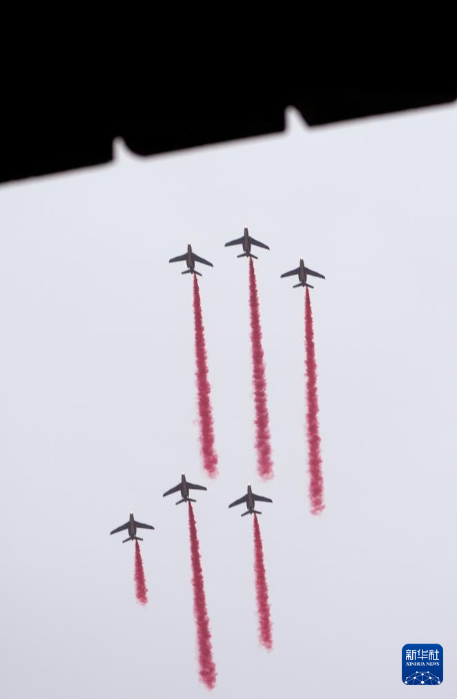 7月26日,飛機(jī)在開(kāi)幕式上表演。新華社發(fā)(POOL照片/艾賈茲·拉希)