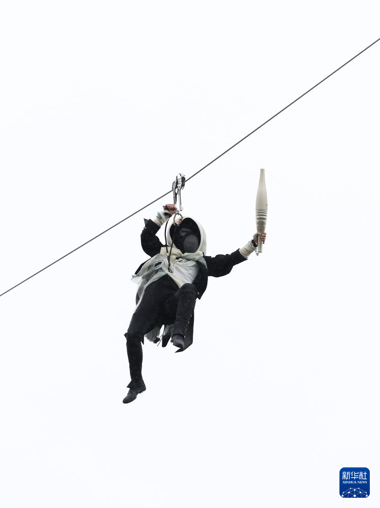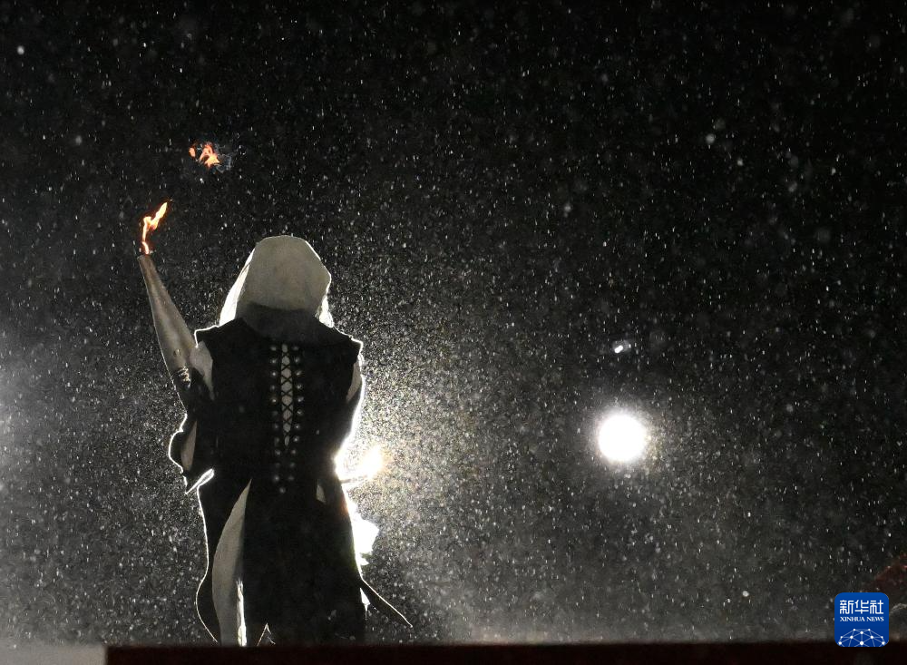 7月26日,一名演員手持火炬在開(kāi)幕式現(xiàn)場(chǎng)表演。新華社記者 李安 攝