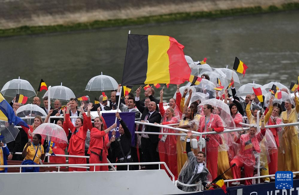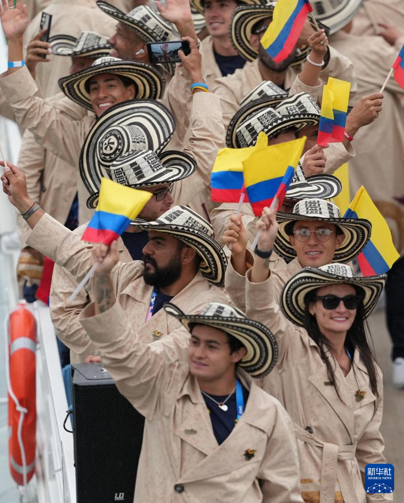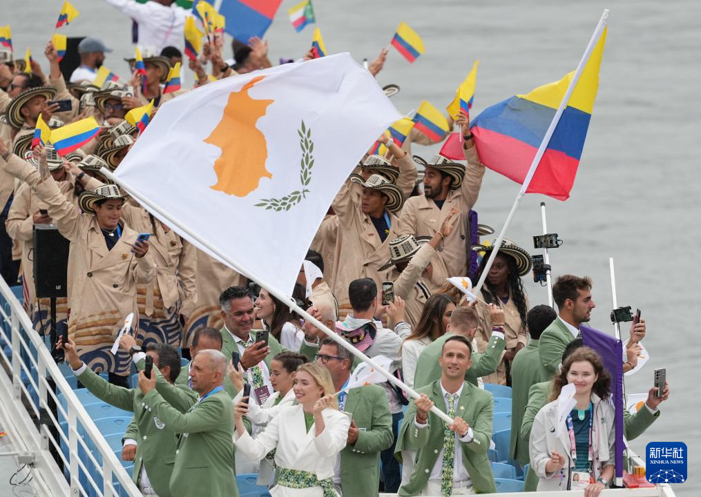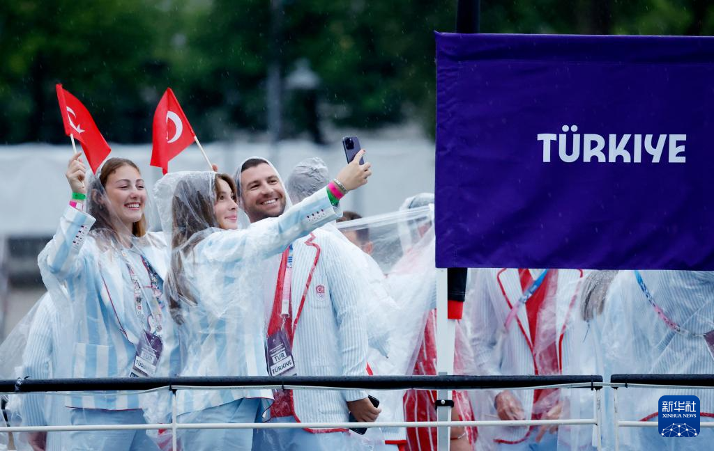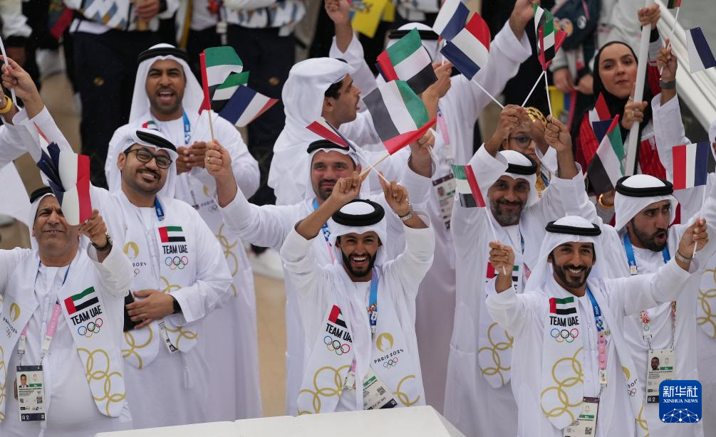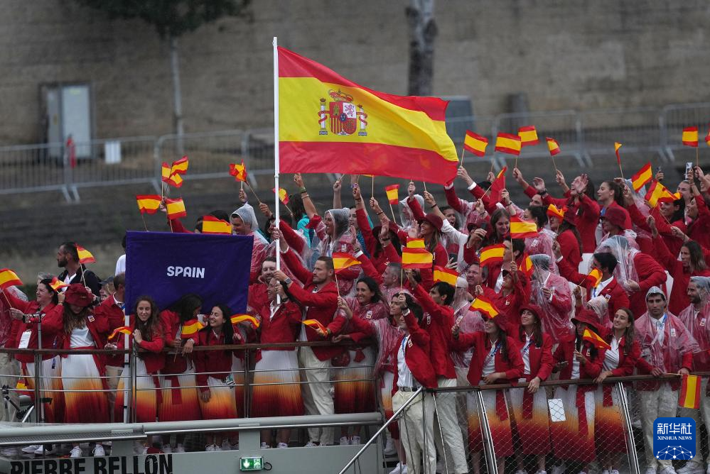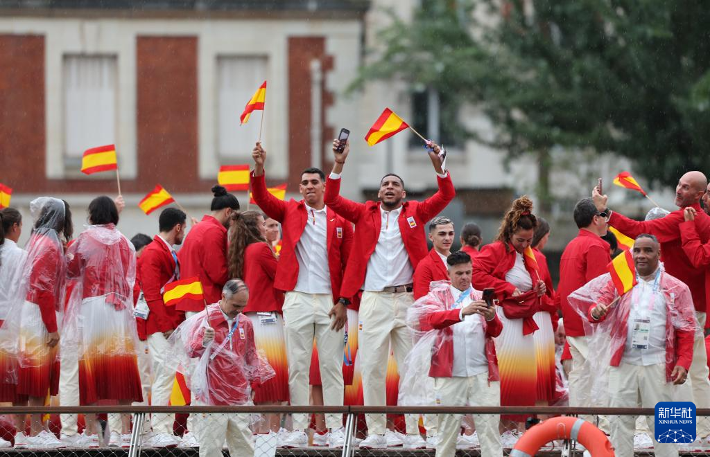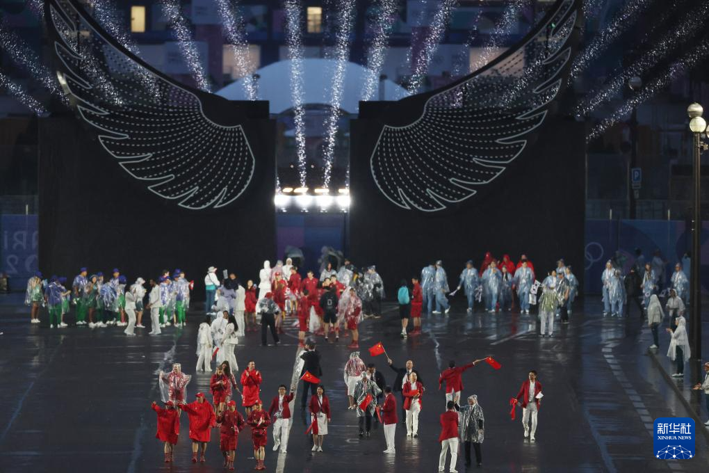 7月26日,各體育代表團(tuán)在開(kāi)幕式上。新華社發(fā)(POOL照片/里卡多·毛佐蘭)
