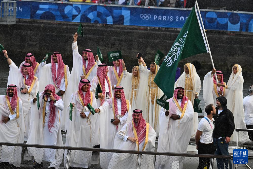 7月26日,安提瓜和巴布達(dá)、沙特阿拉伯、阿根廷、亞美尼亞、阿魯巴體育代表團(tuán)在開(kāi)幕式上。新華社記者 張玉薇 攝
