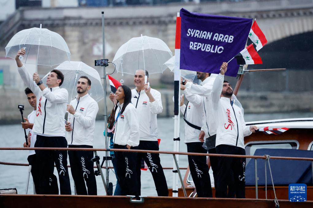 7月26日,敘利亞體育代表團(tuán)在開(kāi)幕式上。新華社記者 江文耀 攝pagebreak