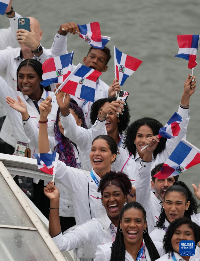 7月26日,多米尼加體育代表團(tuán)在開(kāi)幕式上。新華社記者 萬(wàn)象 攝