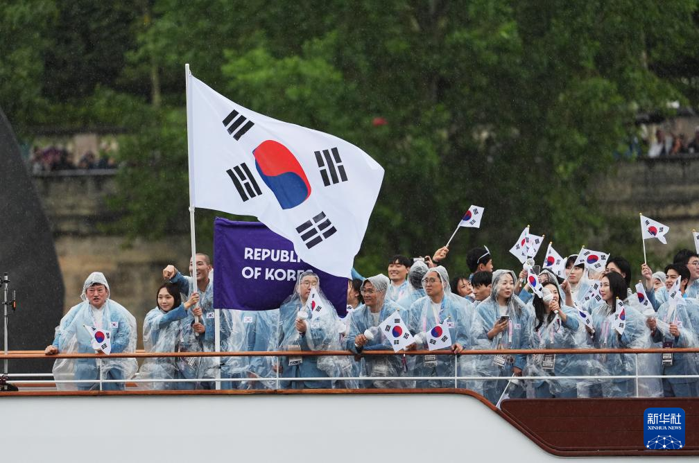 7月26日,韓國(guó)體育代表團(tuán)在開(kāi)幕式上。新華社記者 江文耀 攝
