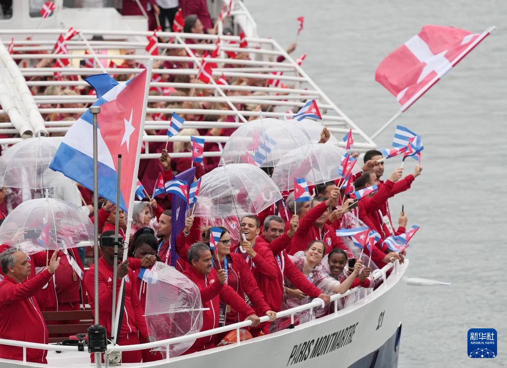 7月26日,古巴體育代表團(tuán)(前)在開(kāi)幕式上。新華社記者 萬(wàn)象 攝