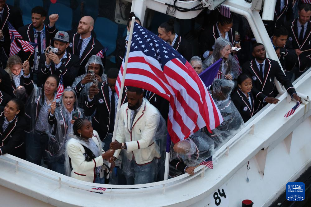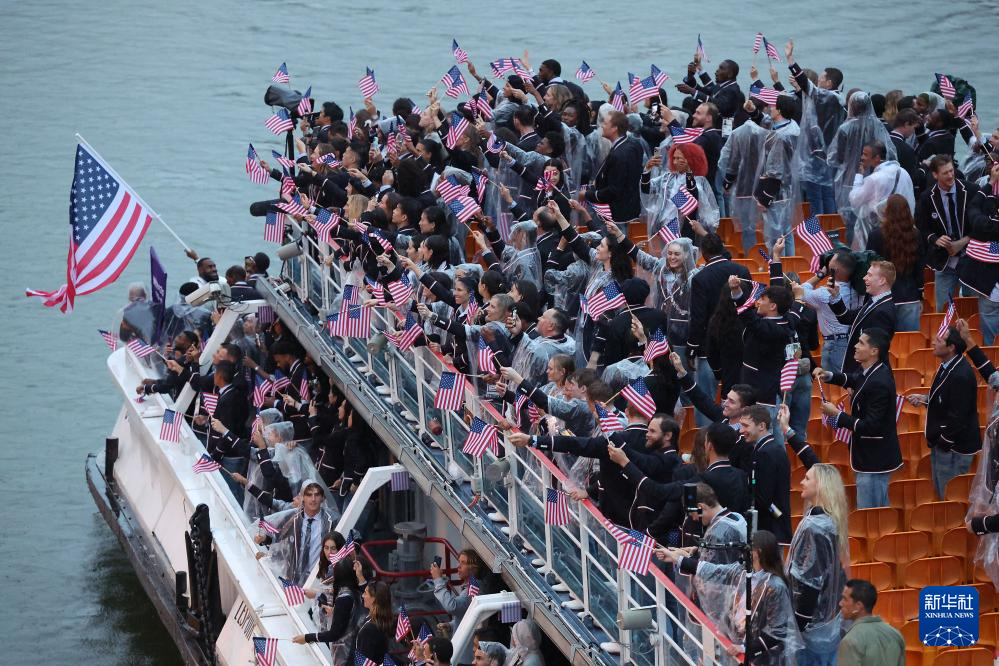 7月26日,美國(guó)體育代表團(tuán)在開(kāi)幕式上。新華社記者 萬(wàn)象 攝