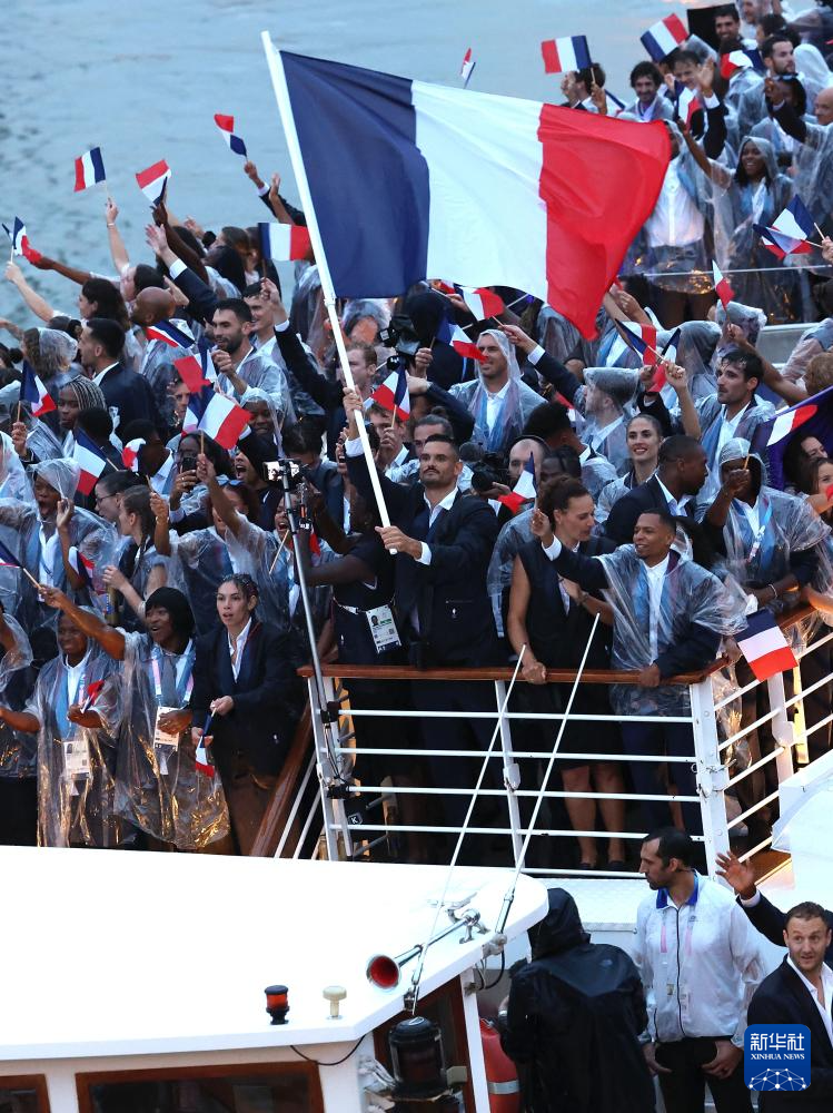 7月26日,法國(guó)體育代表團(tuán)在開(kāi)幕式上。新華社記者 李鋼 攝pagebreak