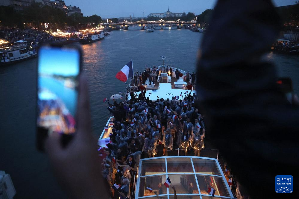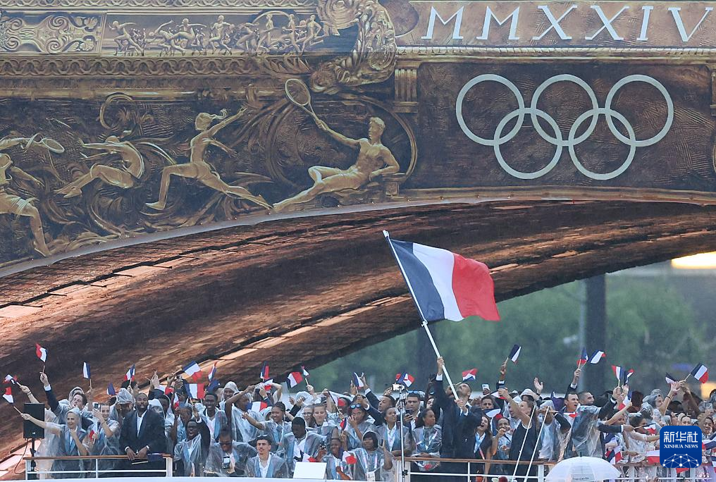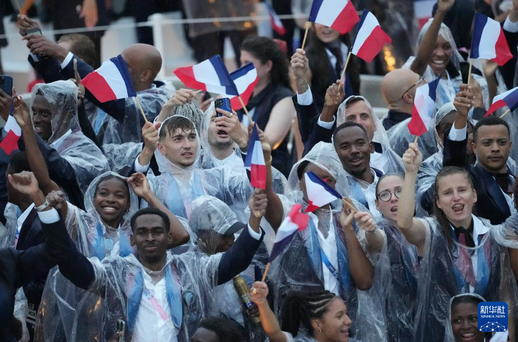 7月26日,法國(guó)體育代表團(tuán)在開(kāi)幕式上。新華社記者 郭昱 攝