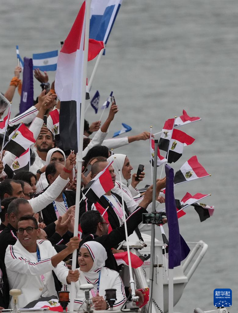 7月26日,埃及體育代表團(tuán)(右)在開(kāi)幕式上。新華社記者 萬(wàn)象 攝