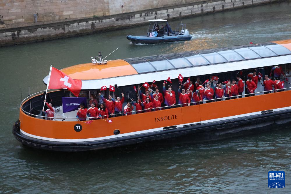 7月26日,瑞士體育代表團(tuán)在開(kāi)幕式上。新華社記者 趙丁喆 攝
