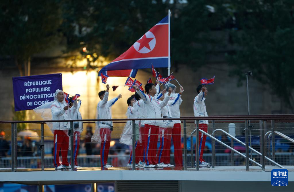 7月26日,朝鮮體育代表團(tuán)在開(kāi)幕式上。新華社記者 費(fèi)茂華 攝
