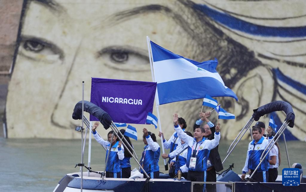 7月26日,尼加拉瓜體育代表團(tuán)在開(kāi)幕式上。新華社記者 江文耀 攝