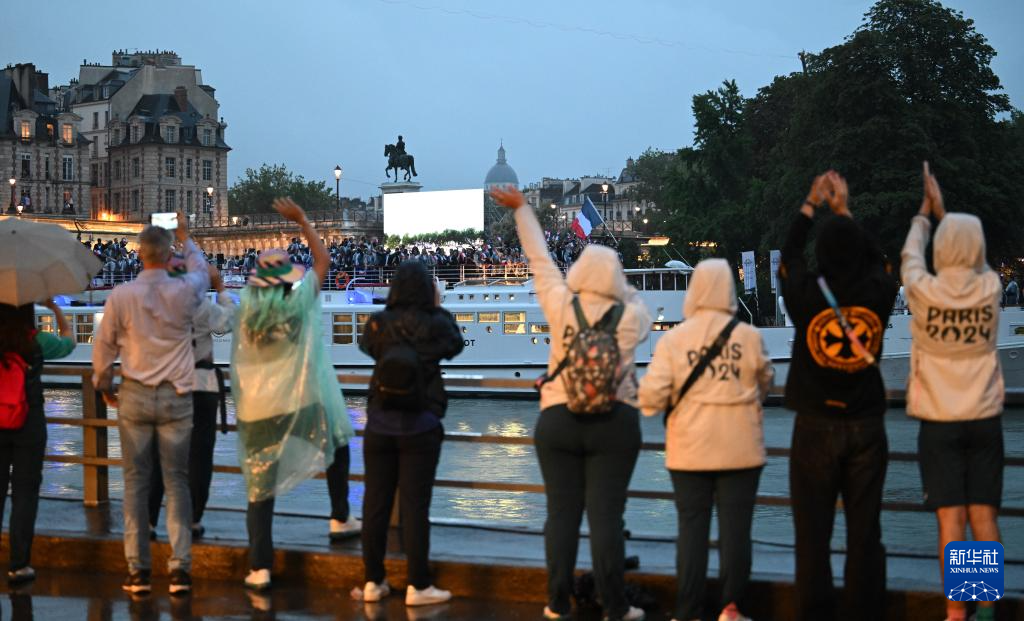 7月26日,觀眾在塞納河邊觀看開(kāi)幕式。新華社記者 任正來(lái) 攝