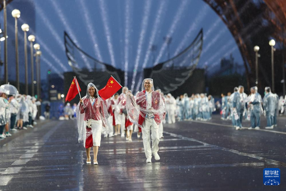 7月26日,中國(guó)體育代表團(tuán)在開(kāi)幕式上。新華社記者 萬(wàn)象 攝