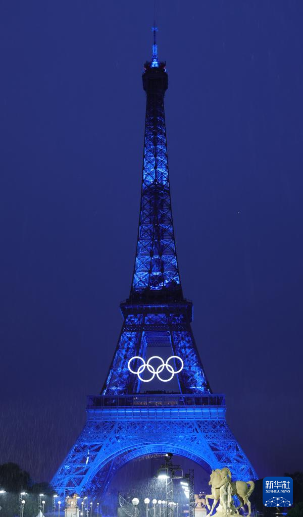 這是開(kāi)幕式上拍攝的埃菲爾鐵塔(7月26日攝)。新華社發(fā)(POOL照片)pagebreak