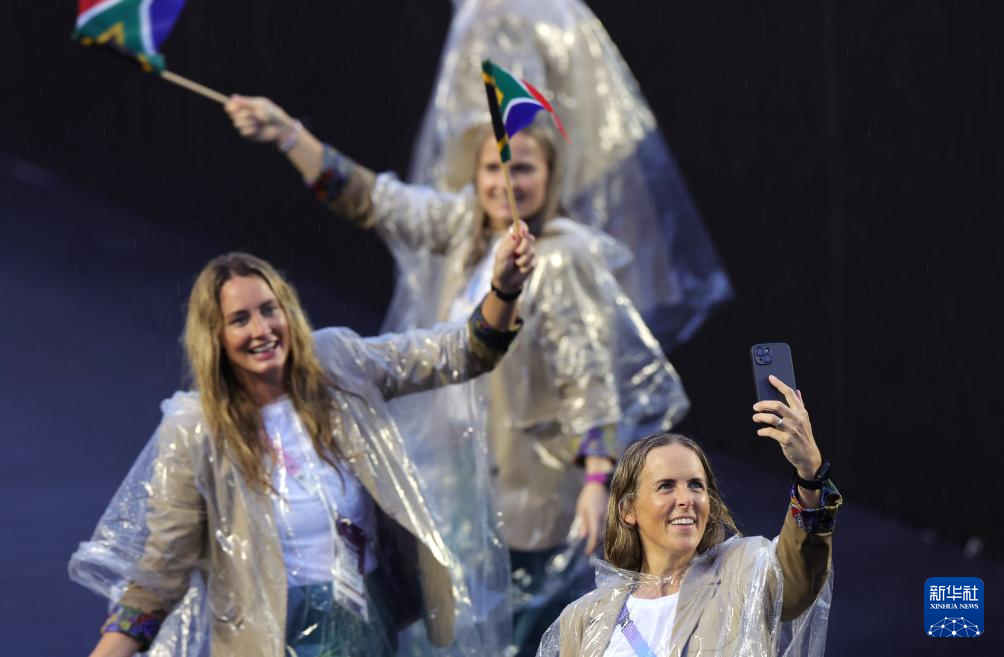 7月26日,南非體育代表團(tuán)進(jìn)入特羅卡德羅廣場(chǎng)。新華社記者 沈伯韓 攝pagebreak