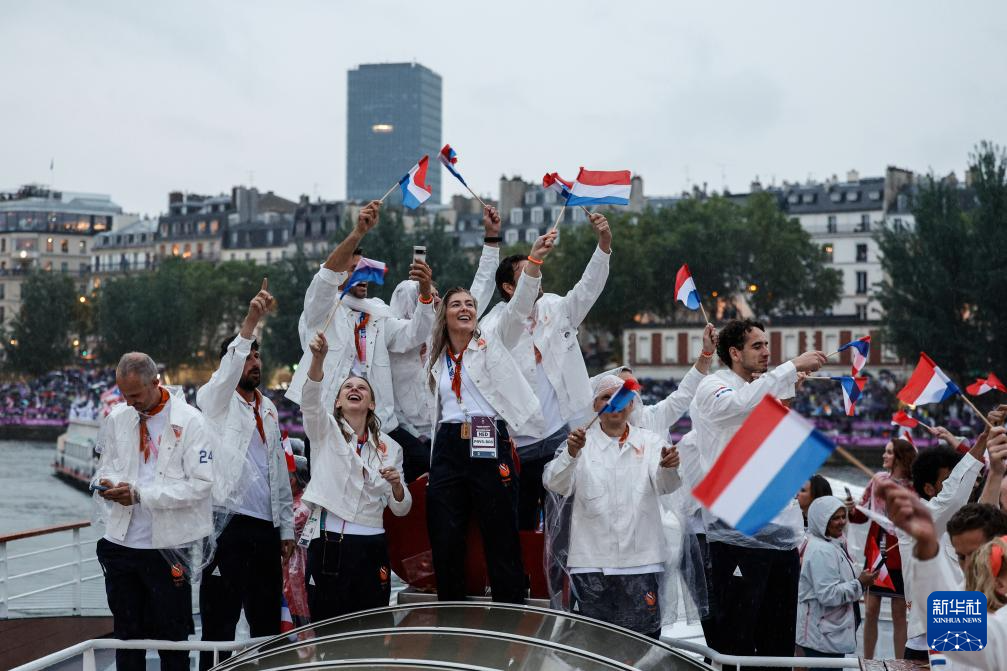 7月26日,荷蘭體育代表團(tuán)在開(kāi)幕式上。新華社發(fā)(POOL照片/范德哈塞爾特)