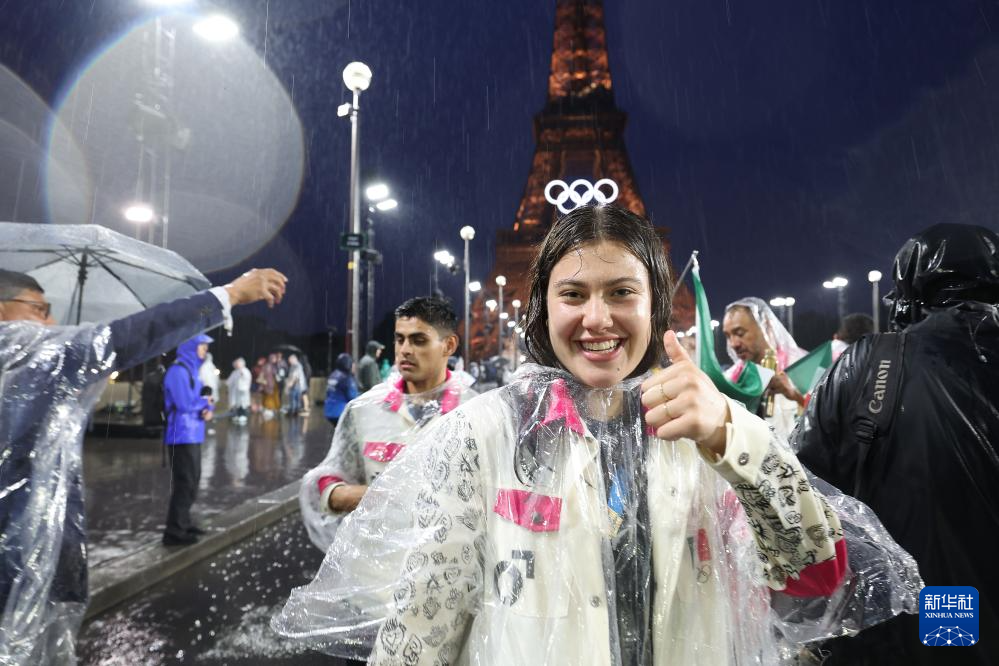 7月26日,埃及體育代表團(tuán)成員在埃菲爾鐵塔前。新華社記者 李明 攝