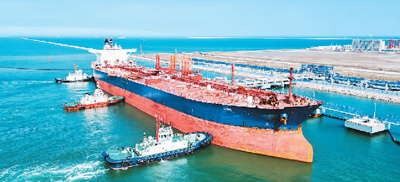東營海關數(shù)據(jù)顯示,今年上半年,山東省東營市東營港進出境貨運量807.3萬噸、貨值344.7億元,同比分別增長492.2%、556.5%。圖為7月30日,東營港10萬噸級碼頭,進口貨輪經(jīng)海關監(jiān)管后,駛出碼頭。