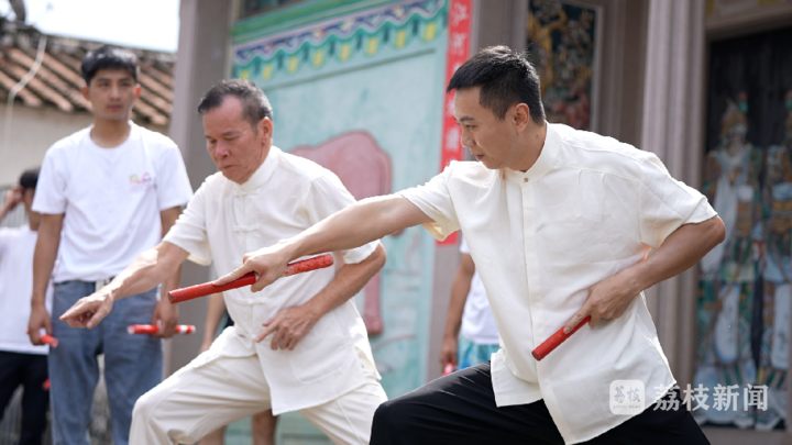 和村里許多家庭一樣,對英歌的喜愛在陳揚波家里代代相傳,他的爺爺陳才斗曾跟隨廣東省歌舞團(tuán),參加了1953年在北京的演出?!皠e人追星,我就追英歌?!标悡P波從小便癡迷于英歌激昂的節(jié)奏和矯健的身姿,夢想著有一天能成為英歌隊的一員。他迄今記得,兒時的大年初一,每當(dāng)英歌鼓點響起,自己便會滿心歡喜地一路追隨在隊伍之后,縱情吶喊。到了寒暑假,他則會約上小伙伴,一起反復(fù)播放著VCD中的動作,時而慢放,時而暫停,接著把掃帚折成兩段,以柄為槌,歡然起舞。