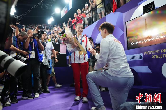 2016年里約奧運(yùn)會(huì),跳水女子三米板的頒獎(jiǎng)典禮后,跳水運(yùn)動(dòng)員秦凱向何姿求婚的場景曾感動(dòng)全球無數(shù)觀眾。巴黎奧運(yùn)會(huì)上,浪漫一刻再度上演。