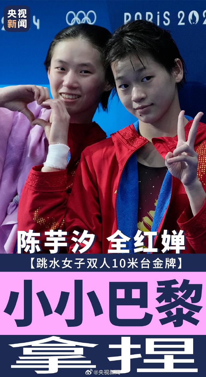 賽后,全紅嬋掛在陳芋汐身上退場(chǎng)時(shí),復(fù)刻經(jīng)典慶祝動(dòng)作:“小小巴黎,拿捏!”