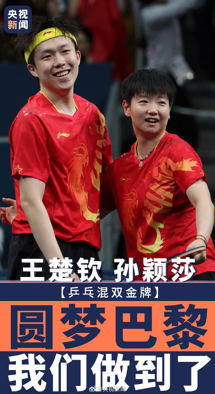 7月30日,在巴黎奧運(yùn)會(huì)乒乓球混合雙打決賽中,中國組合王楚欽/孫穎莎4-2戰(zhàn)勝朝鮮組合,奪得金牌。“我們做到了!”東京的遺憾在巴黎畫上了一個(gè)圓滿的句號(hào)!