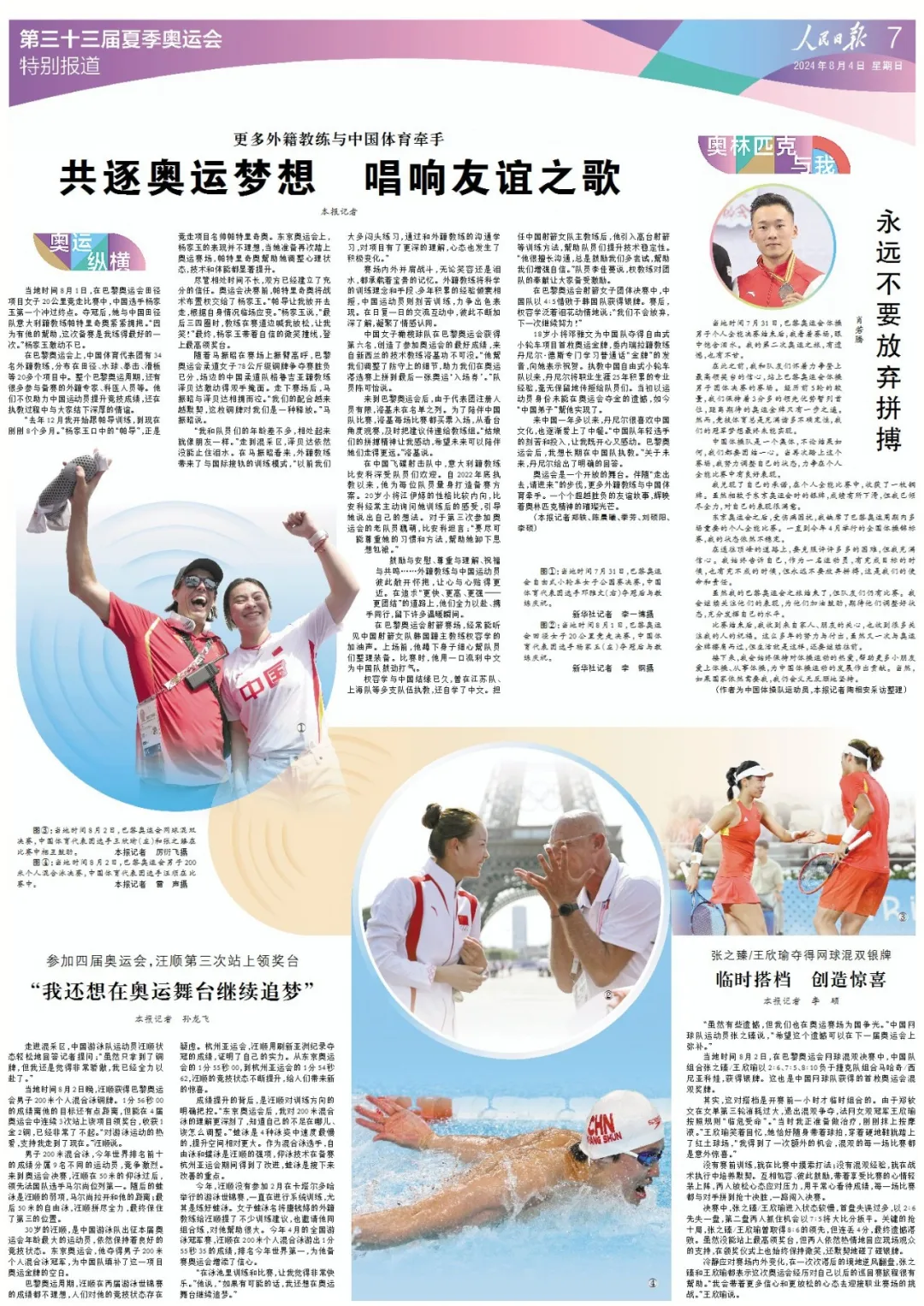 在巴黎奧運(yùn)會(huì)上,中國(guó)體育代表團(tuán)有34名外籍教練,分布在田徑、水球、拳擊、滑板等20多個(gè)項(xiàng)目中。整個(gè)巴黎奧運(yùn)周期,還有很多參與備賽的外籍專家、科醫(yī)人員等。他們不僅助力中國(guó)運(yùn)動(dòng)員提升競(jìng)技成績(jī),還在執(zhí)教過程中與大家結(jié)下深厚的情誼。
