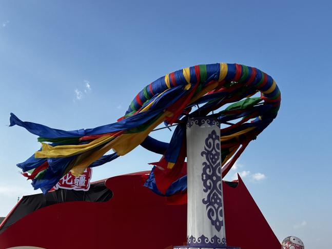 那達(dá)慕現(xiàn)場的巨型“將嘎”(項(xiàng)圈)