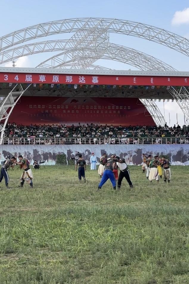 那達(dá)慕現(xiàn)場同時(shí)進(jìn)行多組搏克比賽
