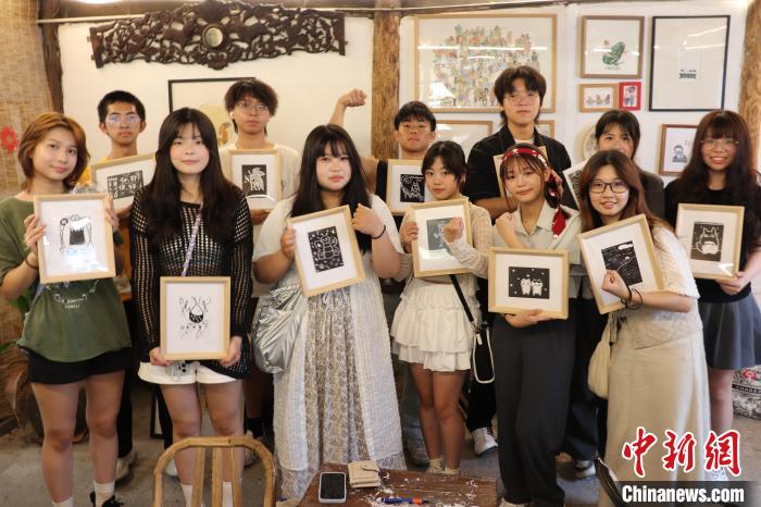 8月15日,臺(tái)灣青年展示制作完成的版畫(huà)。傅飛揚(yáng) 攝