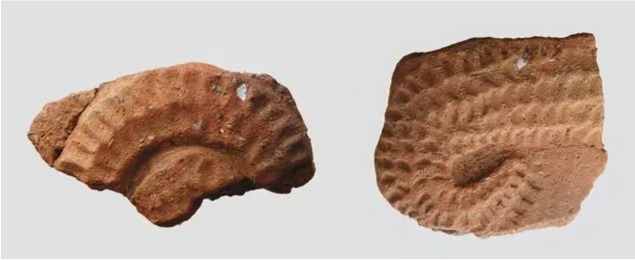 查海遺址出土的兩塊類龍紋陶片(央廣網(wǎng)發(fā) 查海遺址博物館供圖)