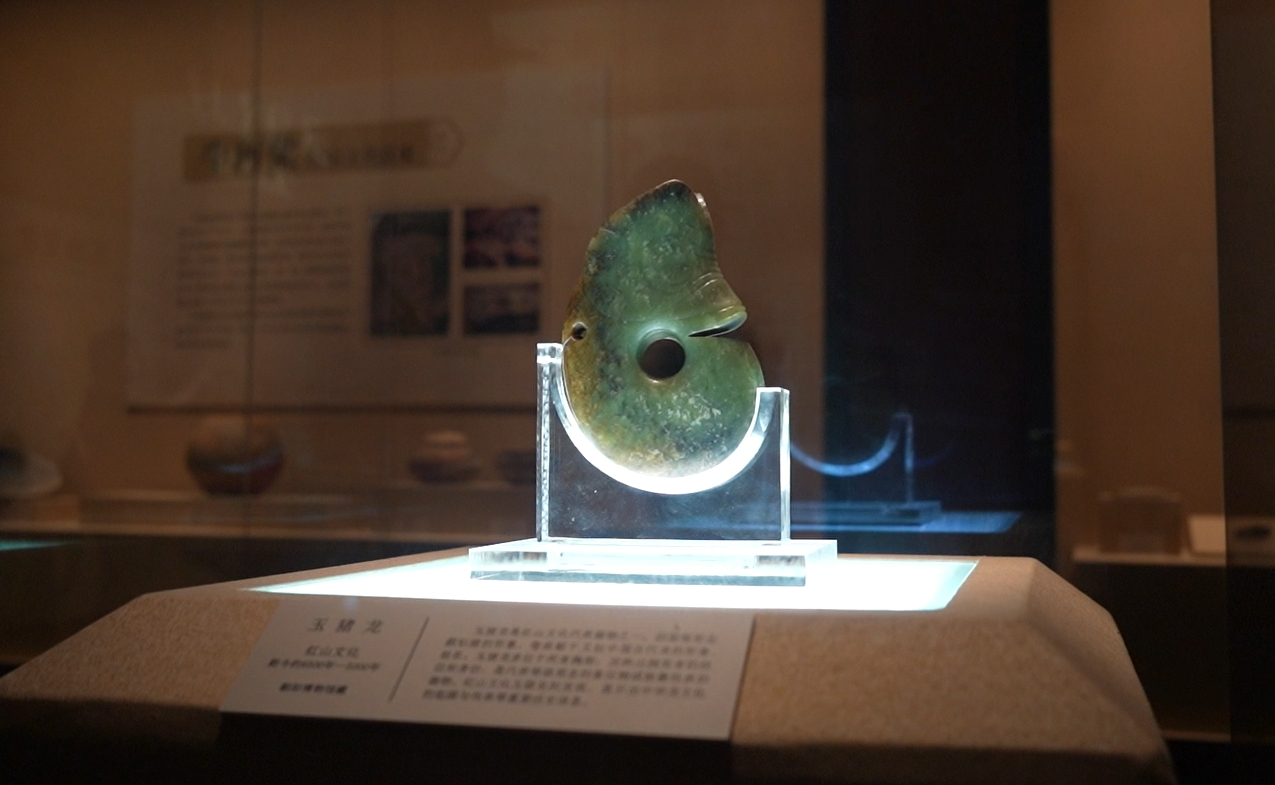 紅山文化玉豬龍,可能是先民族徽(央廣網(wǎng)記者 李子平 攝)