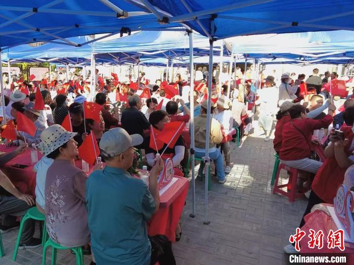 日前,“鑄牢共同體 中華一家親”主題宣傳“塞上江南寫新篇”集中采訪團(tuán)走進(jìn)寧夏吳忠市利通區(qū)勝利鎮(zhèn)。圖為該鎮(zhèn)第二十屆社區(qū)鄰居節(jié)百家宴現(xiàn)場(chǎng)。中新網(wǎng)記者 劉玥晴 攝