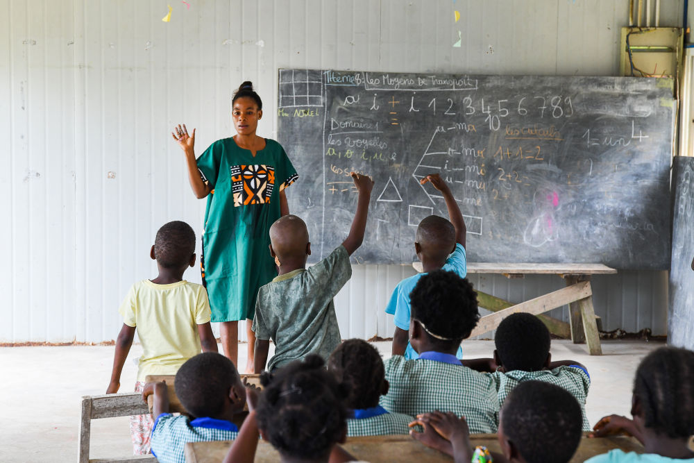 7月10日,在喀麥隆南部大區(qū)克里比市,老師和學生參加恩杜馬萊雙語學校暑期活動。新華社發(fā)(科普索攝)