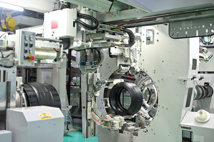 這是2024年7月26日拍攝的浙江杭州中策錢塘實業(yè)有限公司輪胎數(shù)字工廠車間內(nèi)的自動化輪胎生產(chǎn)線。新華社記者 江漢 攝