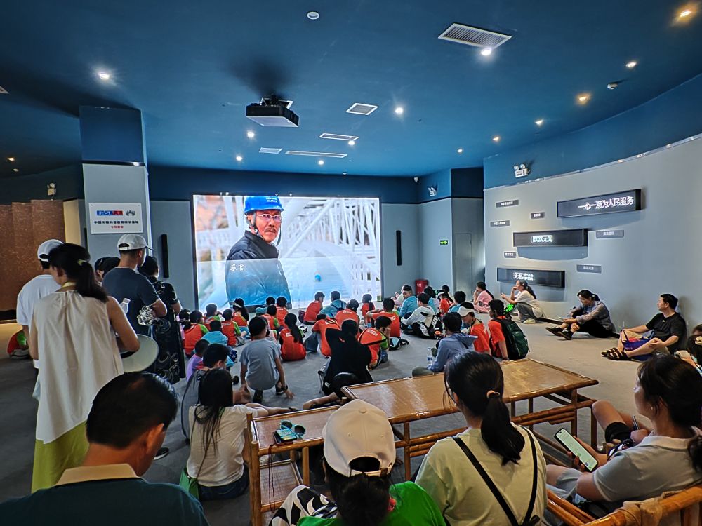 8月14日,來(lái)自河南鄭州研學(xué)團(tuán)隊(duì)的中小學(xué)生在南仁東事跡館觀(guān)看影片。新華社記者 齊健 攝