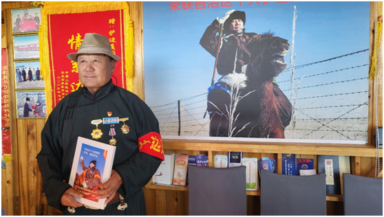 從石頭路走到柏油路,從騎駱駝、馬兒巡邊,到騎摩托車巡邊……圖門的護邊之路走了許多年,他把父輩們守邊護邊的精神一直傳承下去,他說:“作為一名共產(chǎn)黨員,作為一個黨組織信任的‘紅色堡壘戶’,我會守好邊疆安寧,守護好這片綠水青山,服務好家鄉(xiāng)廣大牧民群眾,帶領大家過上幸福生活!”